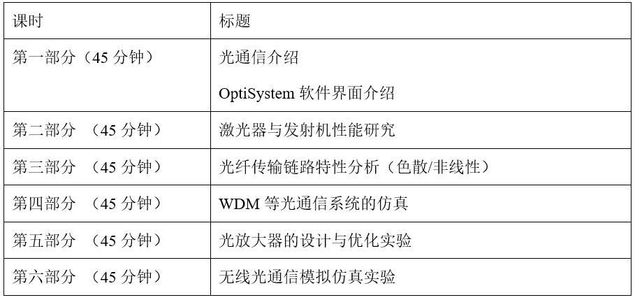 光纖通信課程是通信類專業的重要課程。但是光纖通信課程中概念原理抽象,實驗難度比較大,學生不利于理解。OptiSystem是光通信系統仿真軟件,利用OptiSystem軟件,可以將模擬仿真與課本案例相結合,增強學生對光通信器件以及系統的理解。