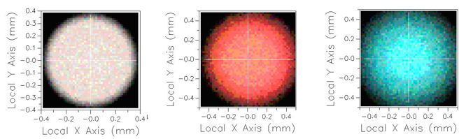 圖4.準(zhǔn)直白光束(左),透射光束(中)和反射光束(右)的彩色圖像