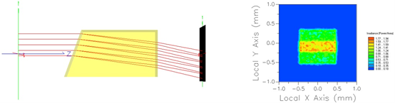 其中L=桿長,λ是以系統單位表示的光波長,K是一個整數,no和ne是雙折射率的尋常和非尋常分量。通過這個塊狀雙折射材料的光線追跡會將每個光線分成尋常和非尋常分量。作為分析結果,偏振點圖(Polarization Spot Diagram)將會顯示每個單獨的分量(圖2)。