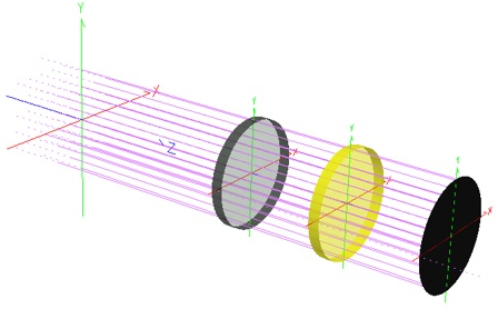 模擬波片的一個更加精確的方法是指定一個自定義雙折射材料到一個桿狀元件中。在FRED文件的Material分類中,用戶可以右鍵點擊并選擇Create a New Material….在下拉菜單中,可以選擇“Sampled Birefringent and/or Optically Active Material”。對于這個例子,晶軸偏轉+45°(0.707,0.707,0),然后定義下面的材料特性(基于方解石晶體):波長=0.59um,no=1.658,ne=1.486,ko=0,ke=0。