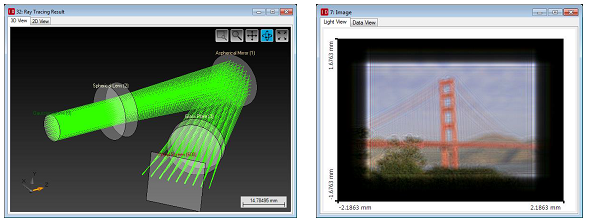 左圖給出了一個光學系統-通過本課程中介紹的場追跡(Field Tracing)和光線追跡(Ray Tracing)來設計和仿真的。右圖給出了一個偏離像平面的一個圖像-在VirtualLab中如何表示光線由本課程中第一個話題給出。