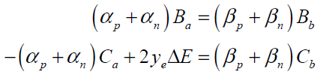 后綴p代表正向。負向發射的ΔE沿著x軸,ΔH沿著y軸負軸。連續性條件為