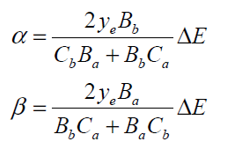 發光子層的導納記為ye,該層的相位厚度為零。多層結構被發光層分為a和b部分,b部分在z軸正方向上。在發光子層中電場用Ba和Bb表示,磁場用Ca和Cb表示,其中B、C和合適的傳播方向形成了常用的右手性質。因此Ca為y軸負方向。在a和b區域分別用乘數α和β,并篩選這些乘數以確保連續性條件。在通常的歸一化情況下,輸出介質中的電場是一致的。在這種情況下,它變為α和β。定義兩種逸出介質的導納為ya和yb。