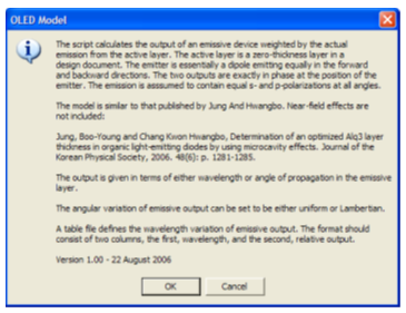腳本計算了發光器件與作為發光層實際輸出的比例。發光層由厚度為零的層表示,并嵌入在design中代表器件結構。運行開始時,腳本會先確定發光層。