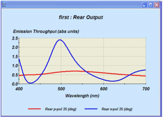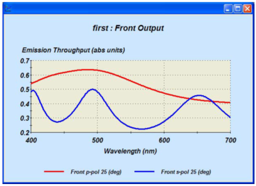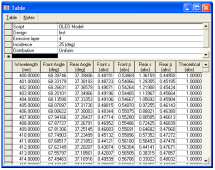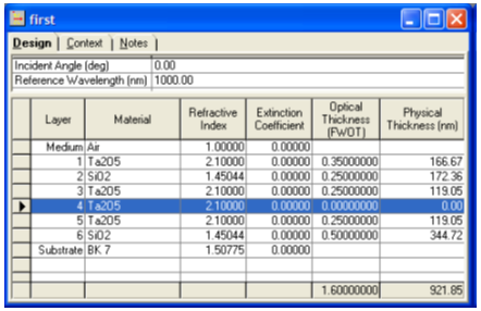 圖2給出了一個測試Design。它并不是一個合適的OLED模型。層4厚度為零并且被自動選擇為發射層。