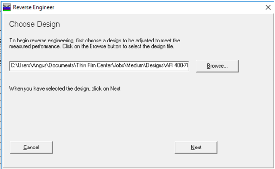 圖2.反演工程工具的對(duì)話框,其中應(yīng)輸入無(wú)錯(cuò)誤設(shè)計(jì)的路徑。