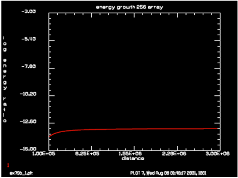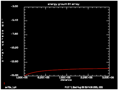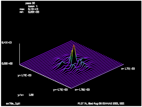 在瞬態拉曼效應的模擬過程中有一個關鍵問題需要解決,那就是如何處理自發輻射的角度。更精細的空間采樣就可以考慮更大的立體角。在本例中,我們只考慮初始10ps的作用過程,這樣瞬態增益將會比穩態增益小很多。模擬過程中我們將傳播距離分30步完成,每一步1km,每一步綜合考慮自發拉曼效應、受激拉曼效應以及衍射效應。