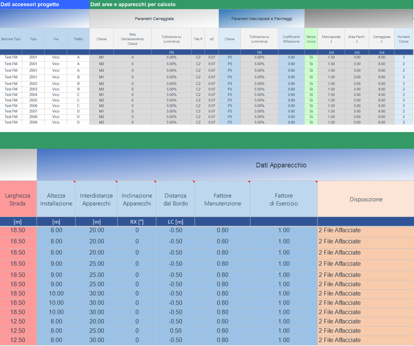利用LITESTAR 4D的ROAD PLUS附加模塊,使用Excel 表格將所需的道路和燈具參數填寫上去,能夠進行大規模的自動道路計算,可以節省大量時間且計算結果詳細。