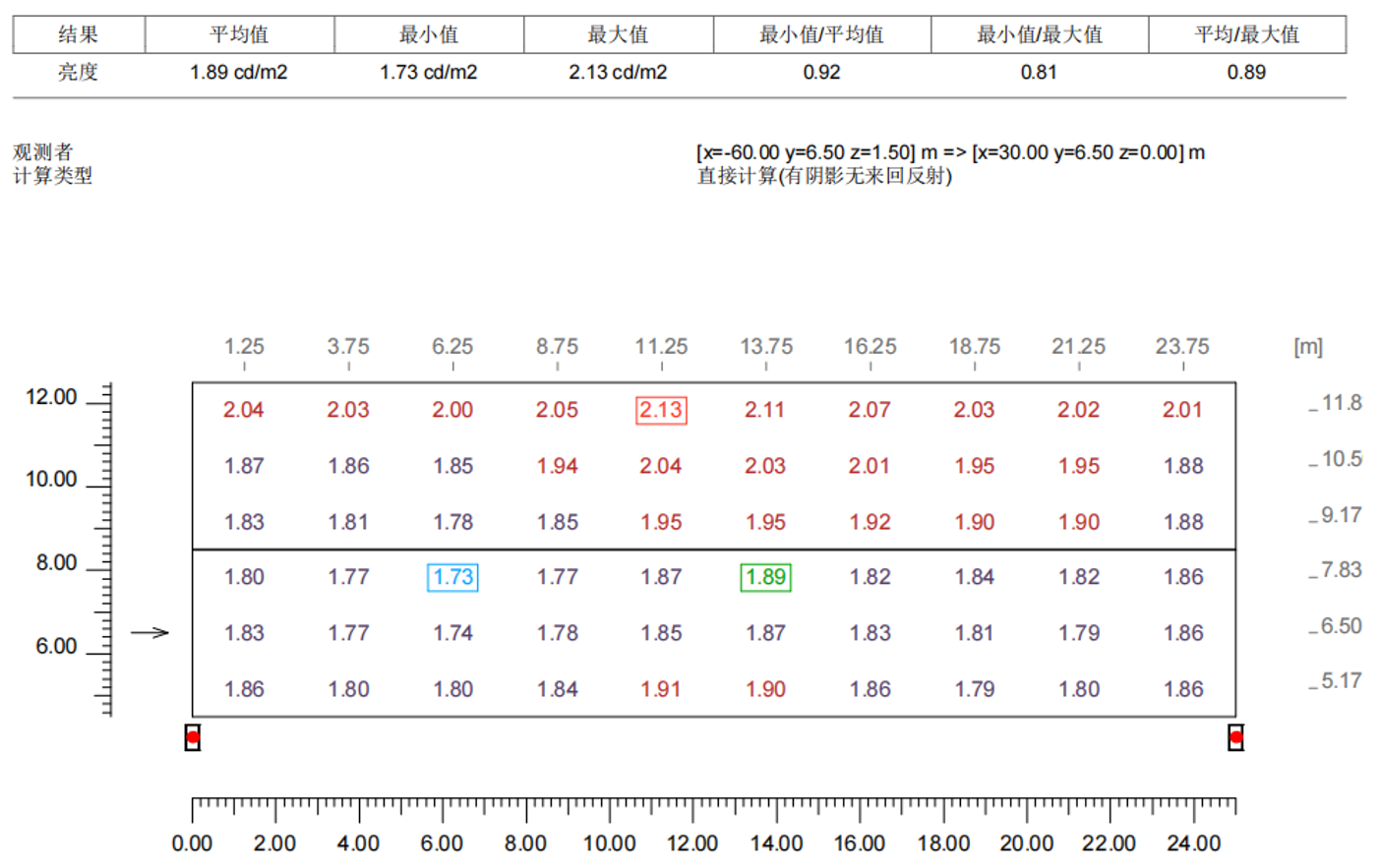 數值圖顯示區域亮度為1.73-1.89cd/㎡
