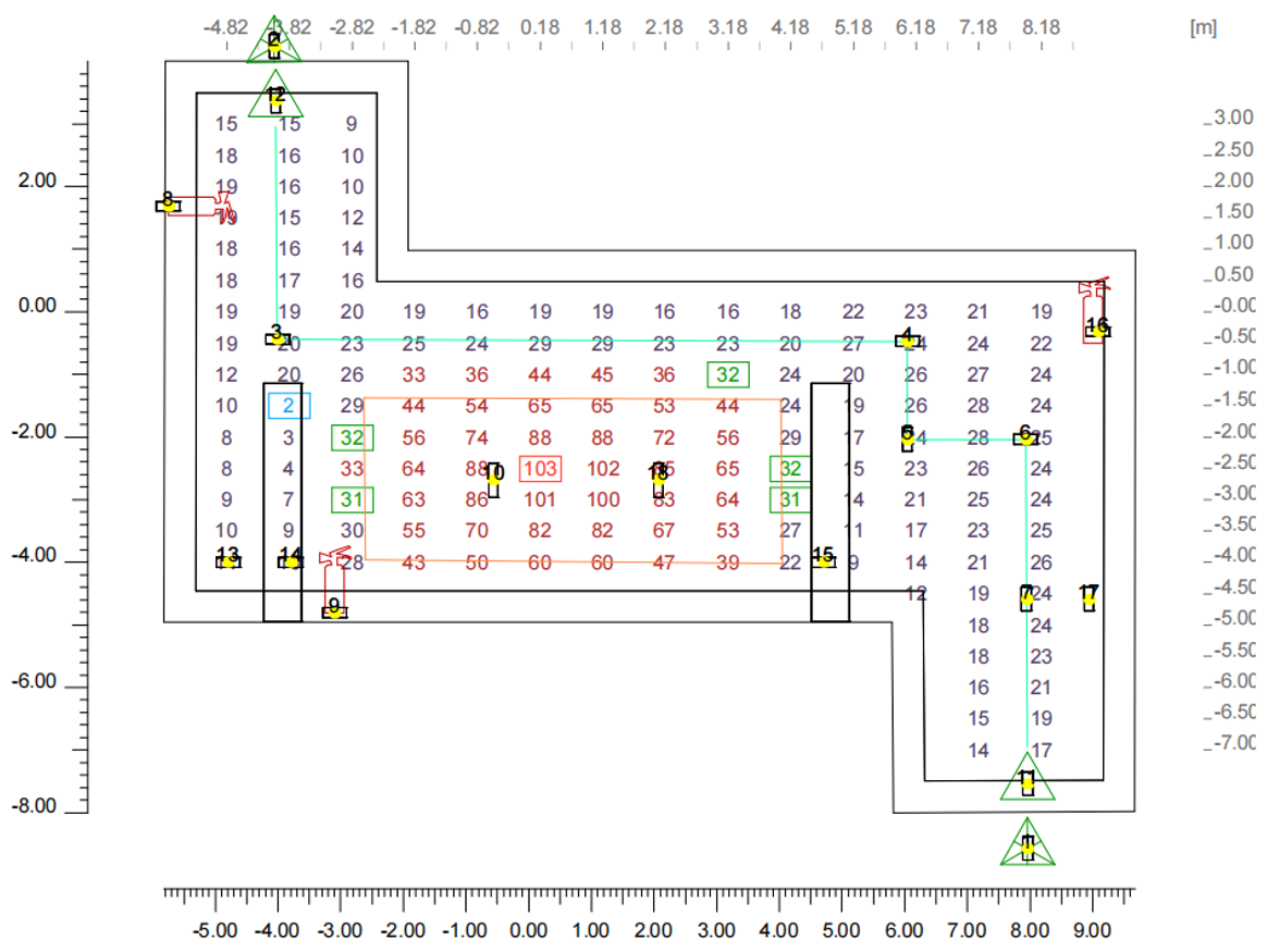 偽色彩圖顯示燈具所照射范圍基本為暖黃色到淡紫色,顏色過渡平緩,照度分布較為均勻