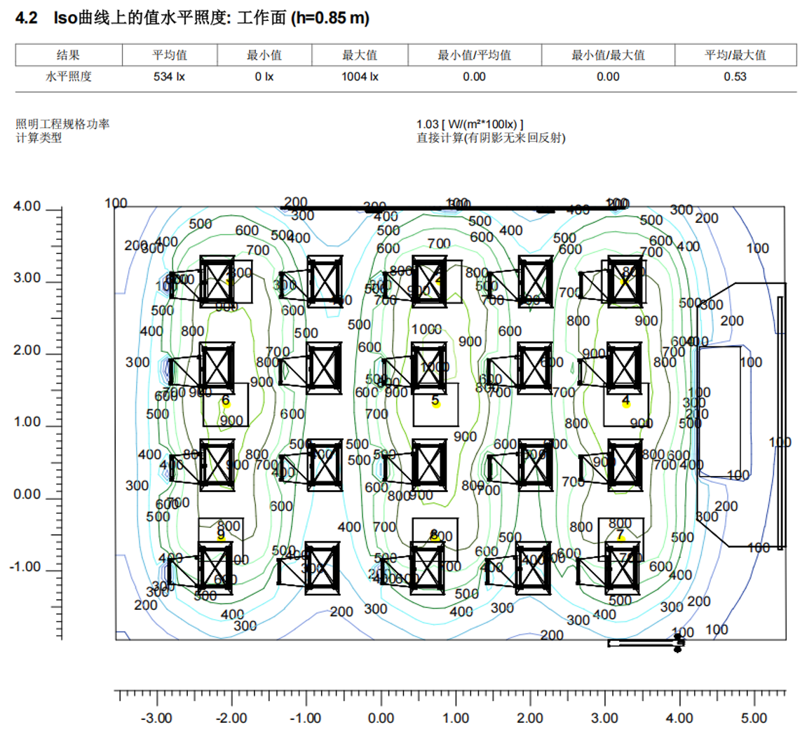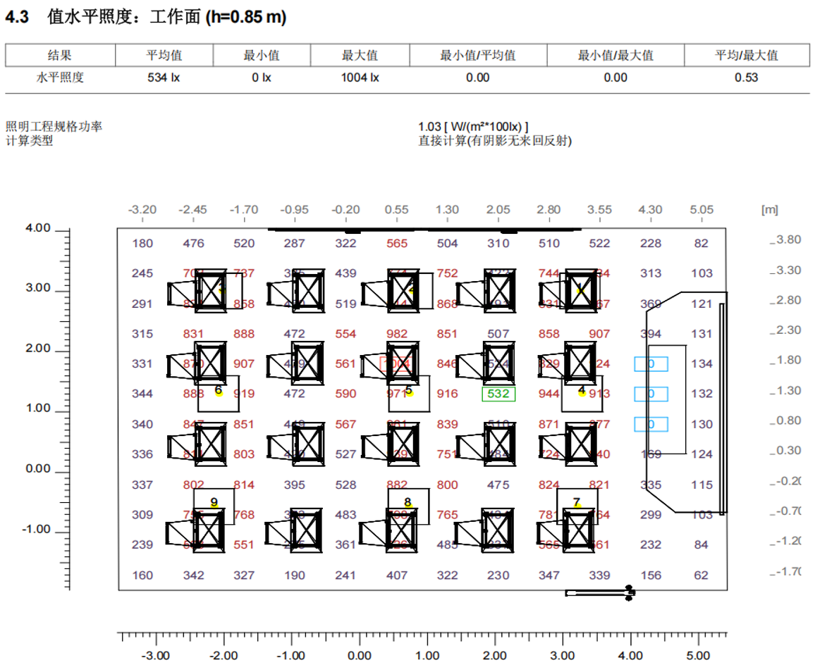 數值圖顯示區域照度為530-700lx。