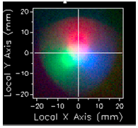 FRED可以設置雙折射材料、極化光源和偏振片等,并且可以模擬偏振干涉現象。如下圖是紅寶石激光經過雙折射材料后形成的典型的偏振干涉圖樣。