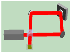 FRED可以模擬多種相干光源,并且借助于“相干標量場分析”工具可以分析相干光的空間傳播特性。左圖是FRED中建立的馬赫-曾德干涉儀模型,由準直相干光源、分束鏡、平面反射鏡、壓電式微反射鏡陣列、探測分析面等元件組成。