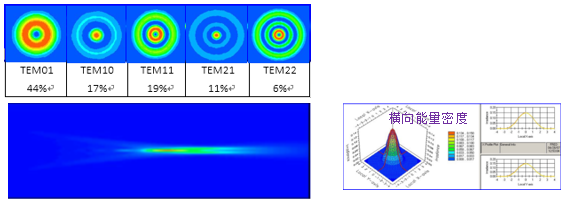 FRED對分析面的方向設置無限制,因此可以計算沿著傳播方向的能量密度,如圖是拉蓋爾高階模式縱向和橫向的能量密度分布。