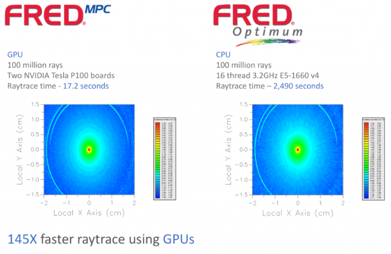 它擁有使用GPU進行光線生成,光線追跡和分析的能力,可以快速、精確的顯示光機光線追跡和分析的結果,運算速度有很大的提升。FRED MPC可以使用GPU核心進行線性縮放,可以進行基于GPU的分布式計算,也可以進行3D模型的渲染。