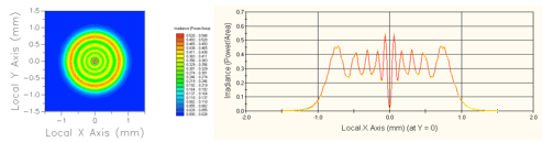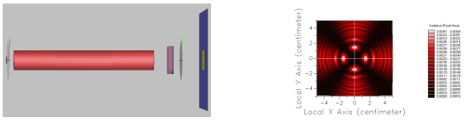 FRED可以模擬近場衍射效應,如下圖例子中干涉圖樣。