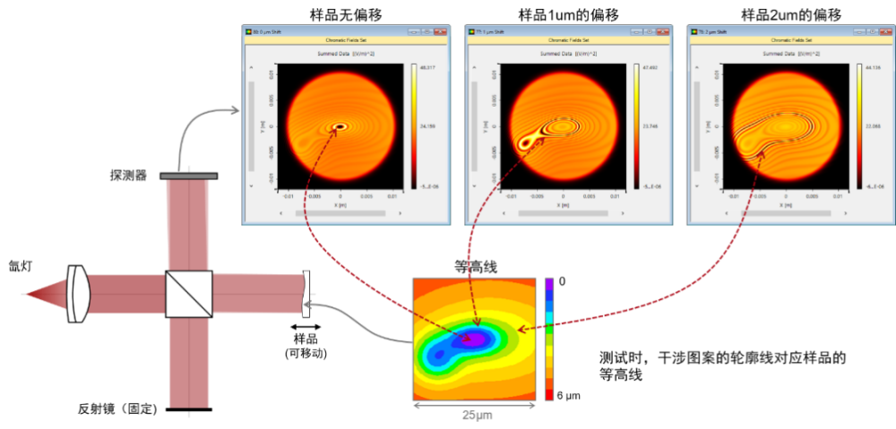 干涉系統光線追跡示意圖以及干涉圖樣展示