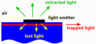 上圖所示垂直發射器(黑色盒子)安裝在基片上或基片內,通常情況下是多層堆棧。光線在活躍區域(黑色盒子)產生,并且被激發到上半部分空間。除了由阻尼材料引起的內部損失,光能也由于輻射到基片或水平方向的光在基片層中被捕獲而損失。建立垂直光光源有以下兩種方法: