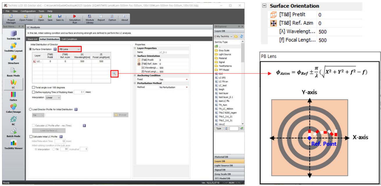 基于仿真區域的中心,根據PB透鏡方程對LC進行對齊。