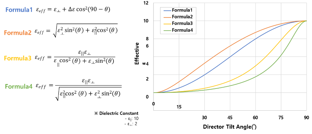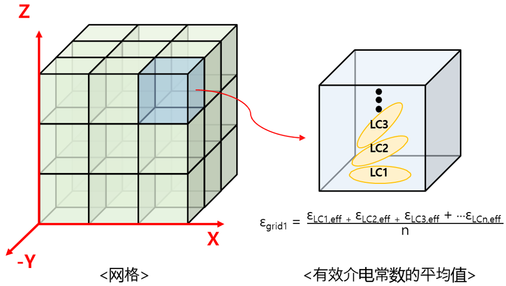 將模擬結構劃分為網格,計算每個網格LC的有效介電常數的平均值。