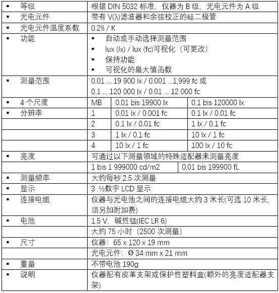 該光電元件由硅二極管組成,其響應度利用全濾波方法對應于相對可見光譜曲線CIE V(λ)。