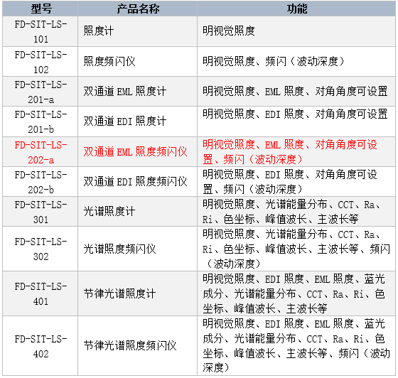 EML照度計的技術參數