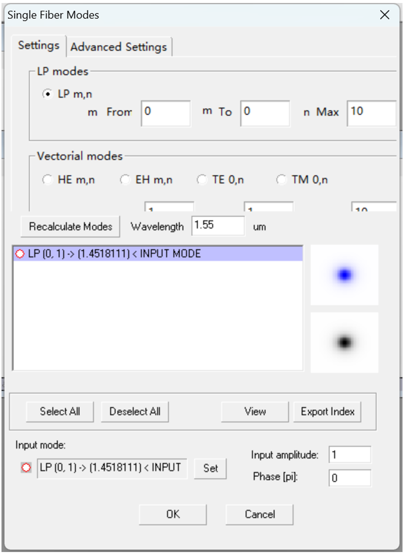 在這一步中,您將訪問列表中的光纖/波導結構的計算模式。你使用的光纖是單模光纖。