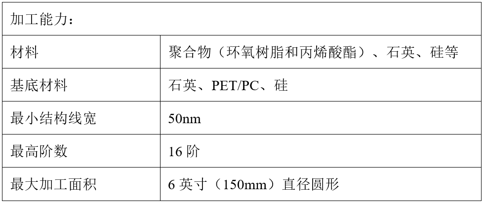 目前,我們主要采用納米壓印、光刻技術加工DOE,可以提供從定制化設計、模具制造、工藝開發、批量生產的全套服務。可以實現納米級、高深寬比、多階等高難度DOE結構的定制加工。