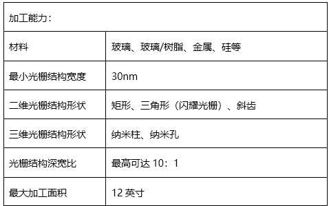 目前,我們除了可以提供各種常用的衍射光柵標準產品之外,還可以提供客戶化的定制加工服務。特別是可以實現納米級的斜齒光柵和三角形的閃耀光柵的加工