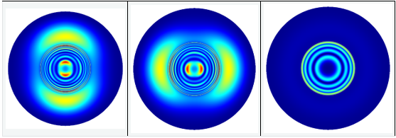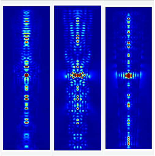下圖顯示了直柱和上述非理想柱的三個偶極子的近場和遠場強度