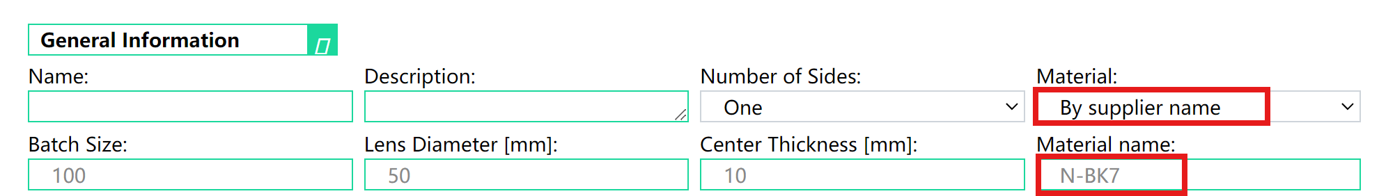2、若需從主流玻璃供應商中選擇特定玻璃型號,請選擇““By suppliers name”并選擇型號,例如N-BK7玻璃: