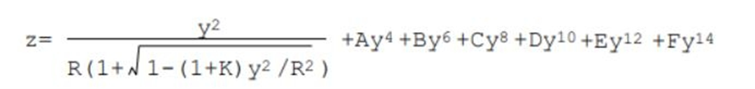非球面是一種旋轉(zhuǎn)對(duì)稱但橫截面為非圓形的曲面,通常可以通過(guò)以下形式的冪級(jí)數(shù)展開(kāi)式進(jìn)行描述: