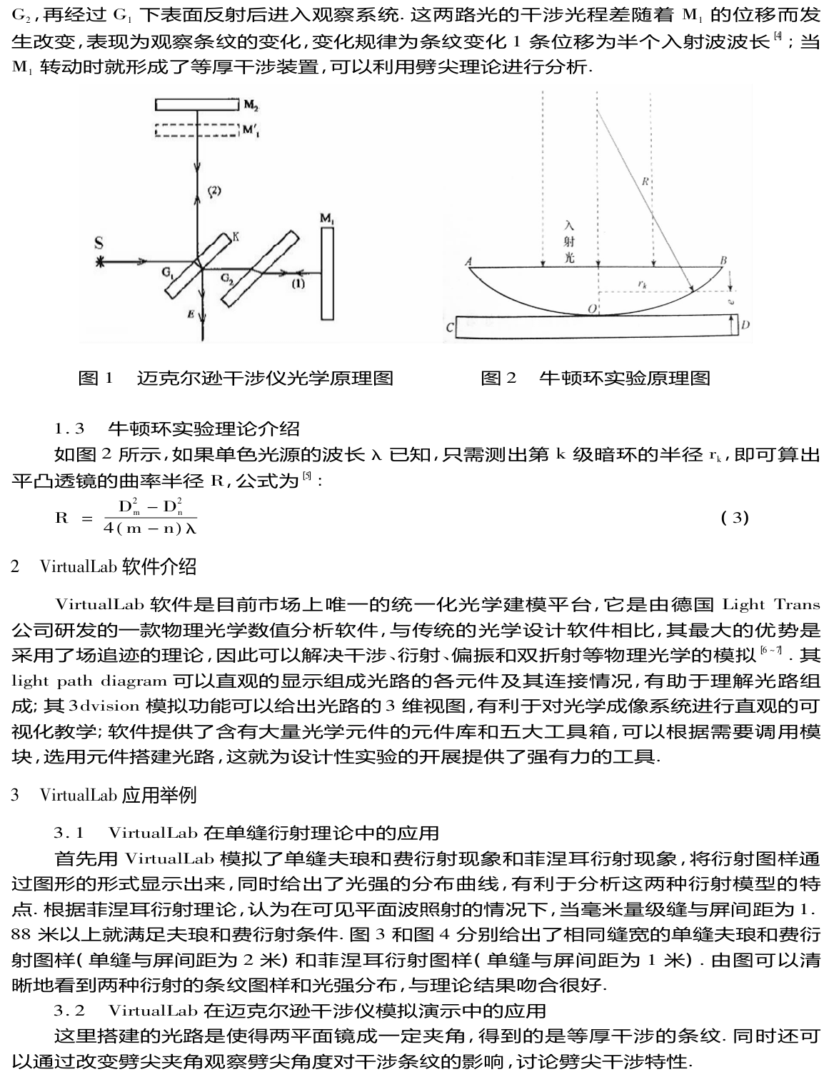 摘要:仿真模擬軟件的使用在光學研究中具有非常重要的意義。本文介紹了最新的光學建模與分析軟件VirtualL ab,通過其在光學理論和實驗中的應用舉例,模擬了單縫衍射現象,邁克耳遜干涉儀實驗裝置和雙折射晶體產生的偏 振現象,并探討了該軟件在設計型實驗中的應用。