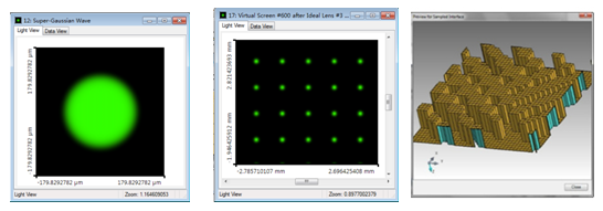 現(xiàn)代光學(xué)系統(tǒng)可能包含大量不同種類的光學(xué)元件,如折射透鏡、衍射透鏡、折衍混合透鏡、菲涅爾和漸變折射率透鏡以及衍射光學(xué)元件,像擴(kuò)束器、光束整形器、衍射光束分束器、計(jì)算全息、相位板、光柵、自由表面元件和微透鏡陣列。除此以外還有使用光源的不同特性,如相干度、顏色和偏振。